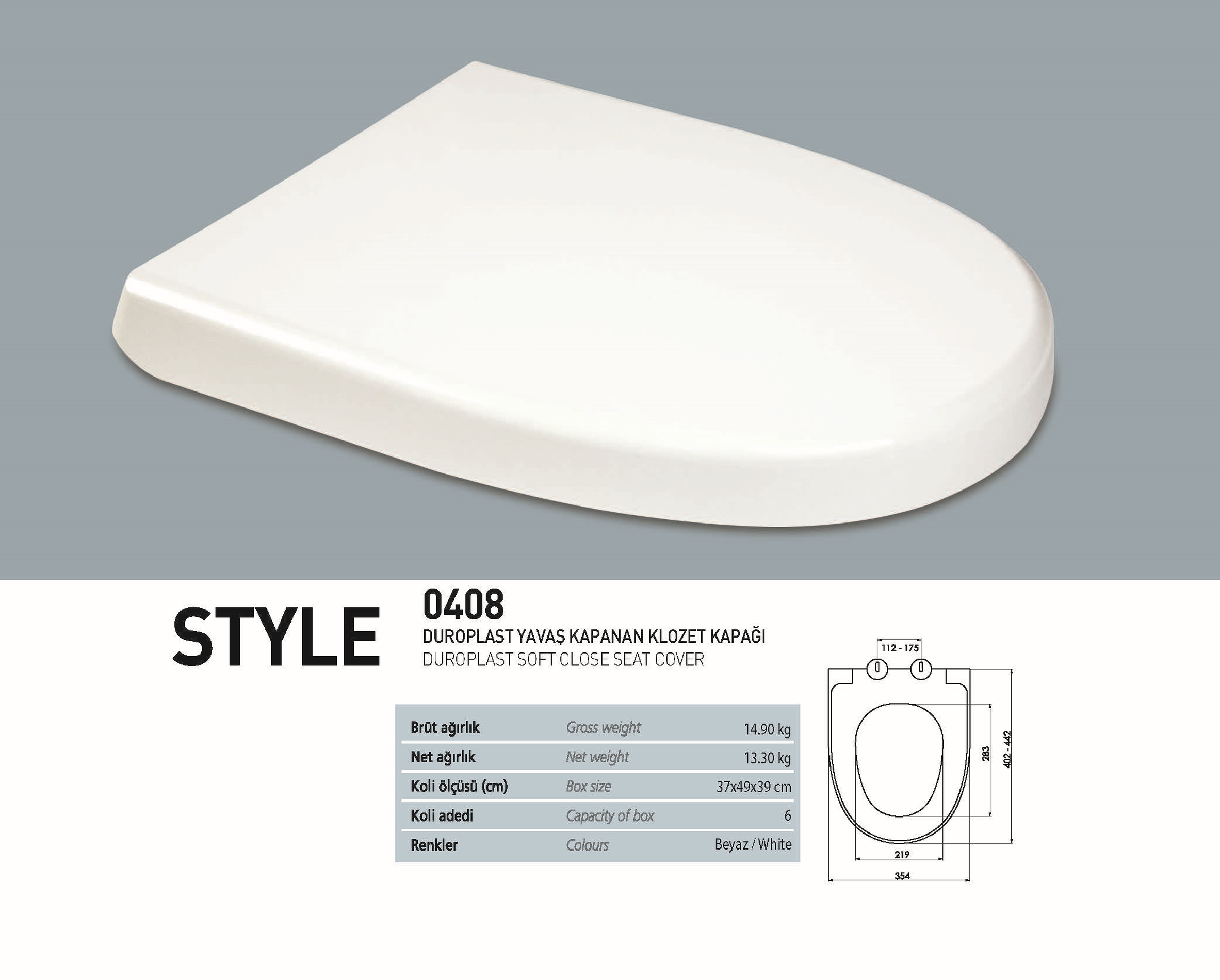 NKP Style Duroplast Yavaş Kapanan Klozet Kapağı, dayanıklı ve uzun ömürlü bir klozet kapağı modelidir. Duroplast, yüksek kaliteye sahip bir malzeme olup, dayanıklılığı ve hijyenik özellikleri ile öne çıkar. Aynı zamanda bu tür kapaklar, estetik açıdan da şık ve modern bir görünüm sunar.